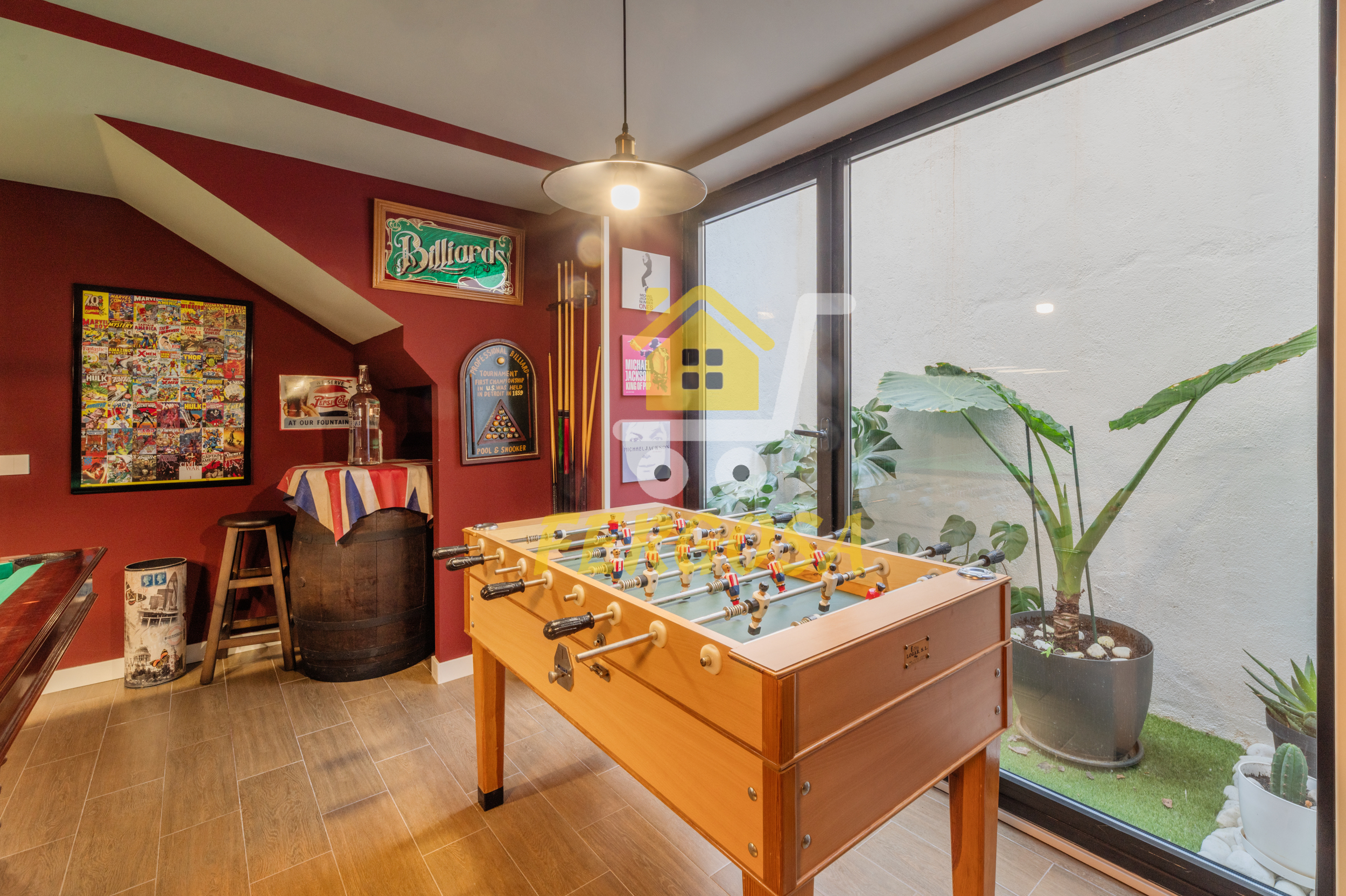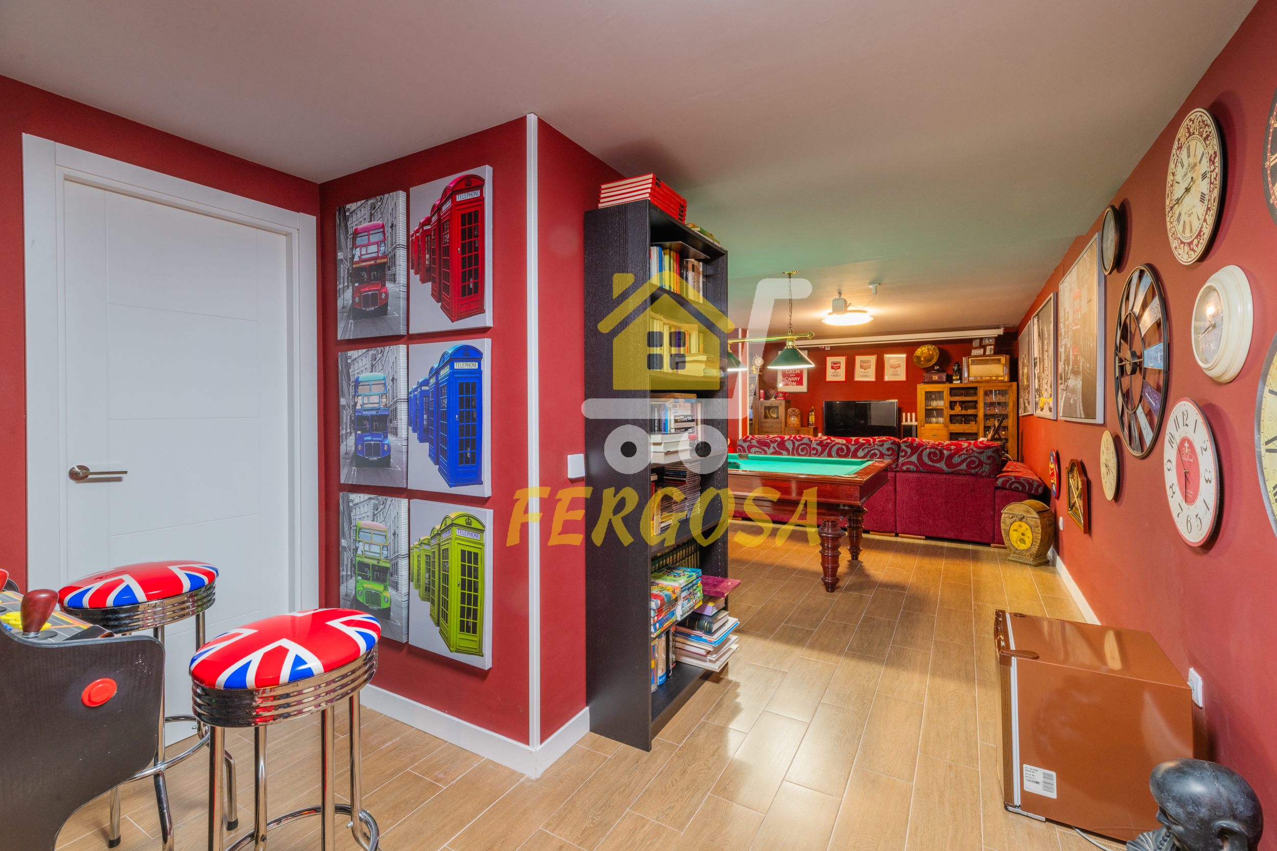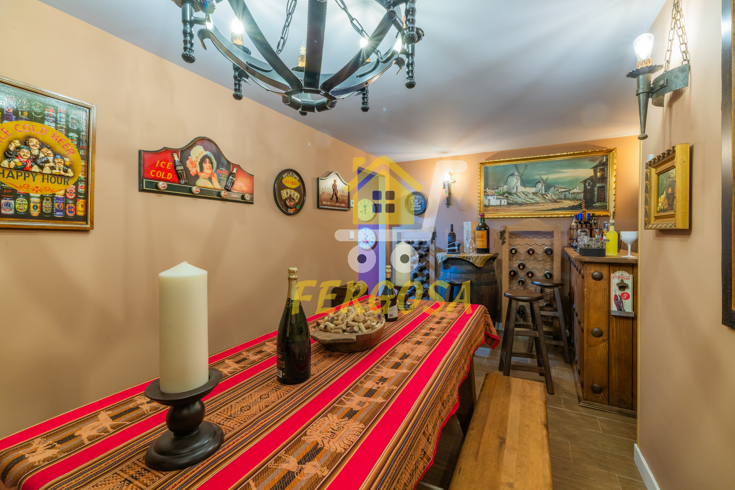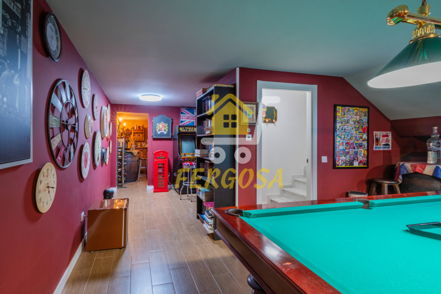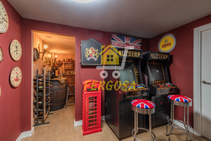 Nada mas entrar tenemos un amplio salón donde dar rienda suelta a la imaginación para decorarlo al gusto que queramos, si continuamos a la derecha veremos un cuarto el cual almacena la caldera de aerotermia de la casa y los acumuladores de las placas solares, los cuales al ser de alta gama la eficiencia energética es impresionante y el ahorro energético se hace notar bastante, ya al fondo nos encontramos con la bodega con una temperatura estupenda para preservar tus mejores vinos y también para poder disfrutarlos en la mejor compañía.